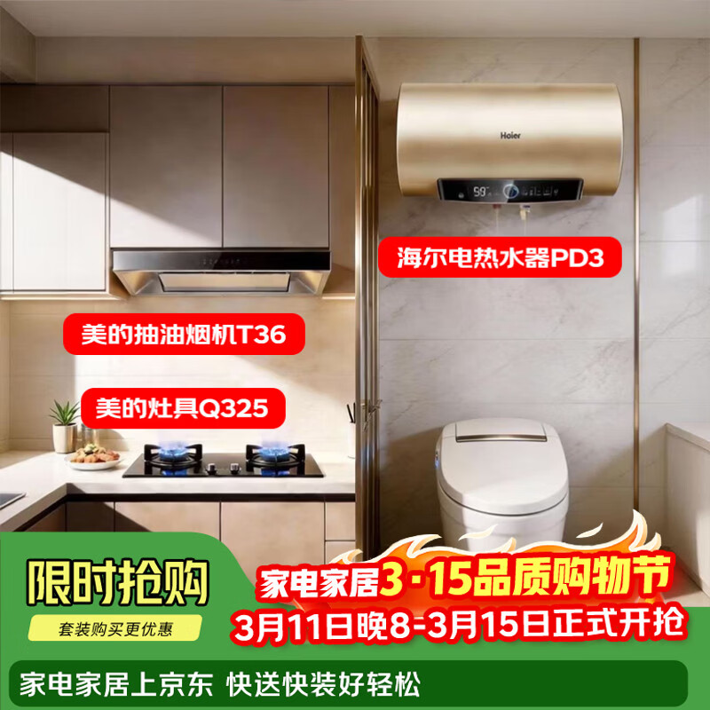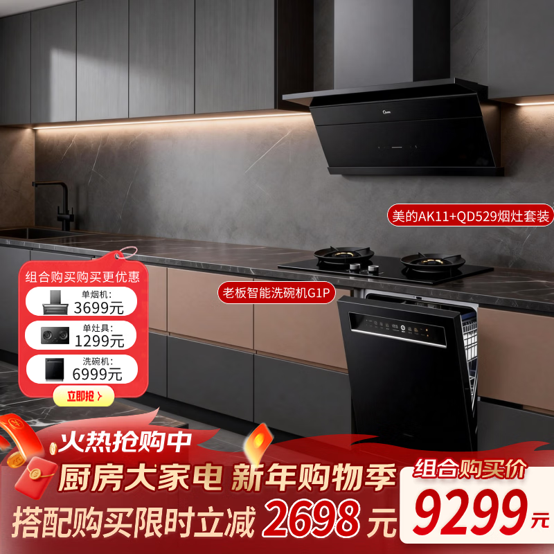 【京东商城】【生活家电】美的AK11蒸汽洗油烟机30风量+QD529大火力燃气灶+老板智能投洗