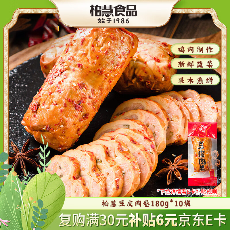 【京东商城】【食品保健】柏慧食品豆皮肉卷180g*10袋五香豆干豆腐小零食辣味鸡肉卷真