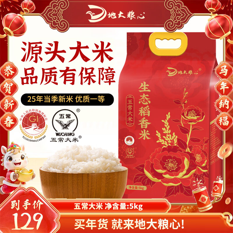 【京东商城】【食品保健】地大粮心生态稻香米 5kg*1 五常大米 10斤