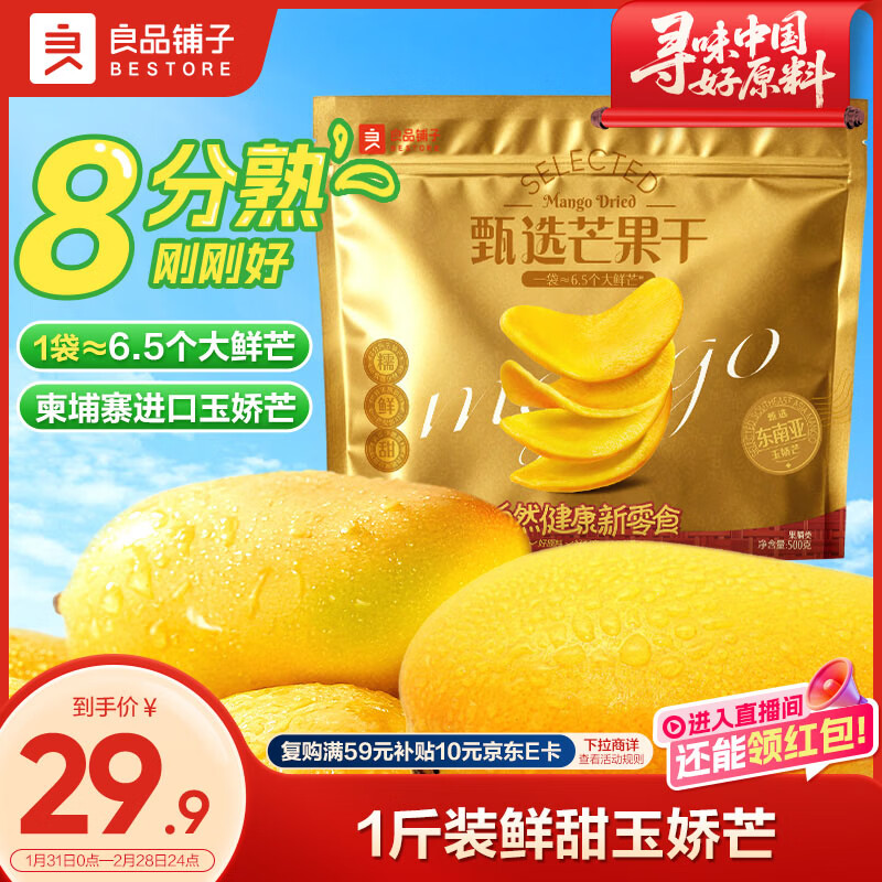 【京东商城】【食品保健】良品铺子 芒果干500g 休闲零食蜜饯果干果脯水果干零食家庭