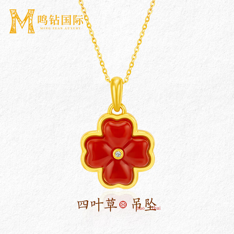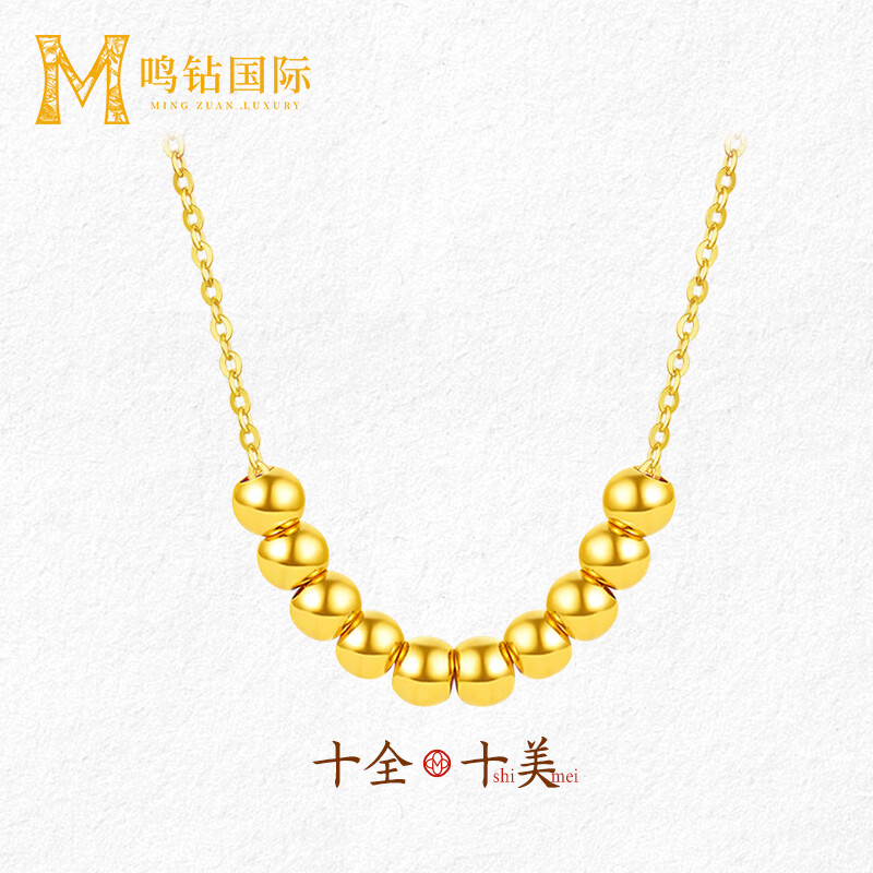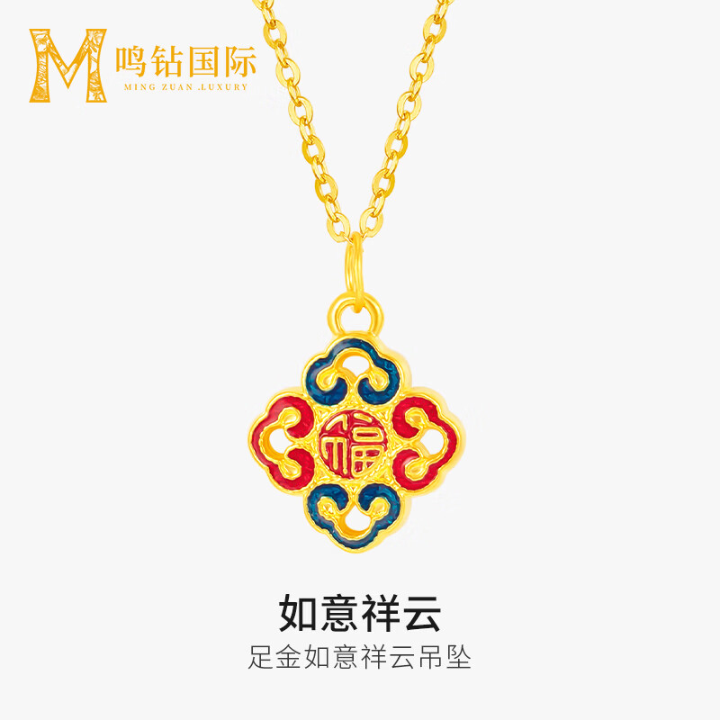 【京东商城】【礼品箱包】鸣钻国际福字锁足金999吊坠女平安纳福轻奢珐琅国风颈饰送