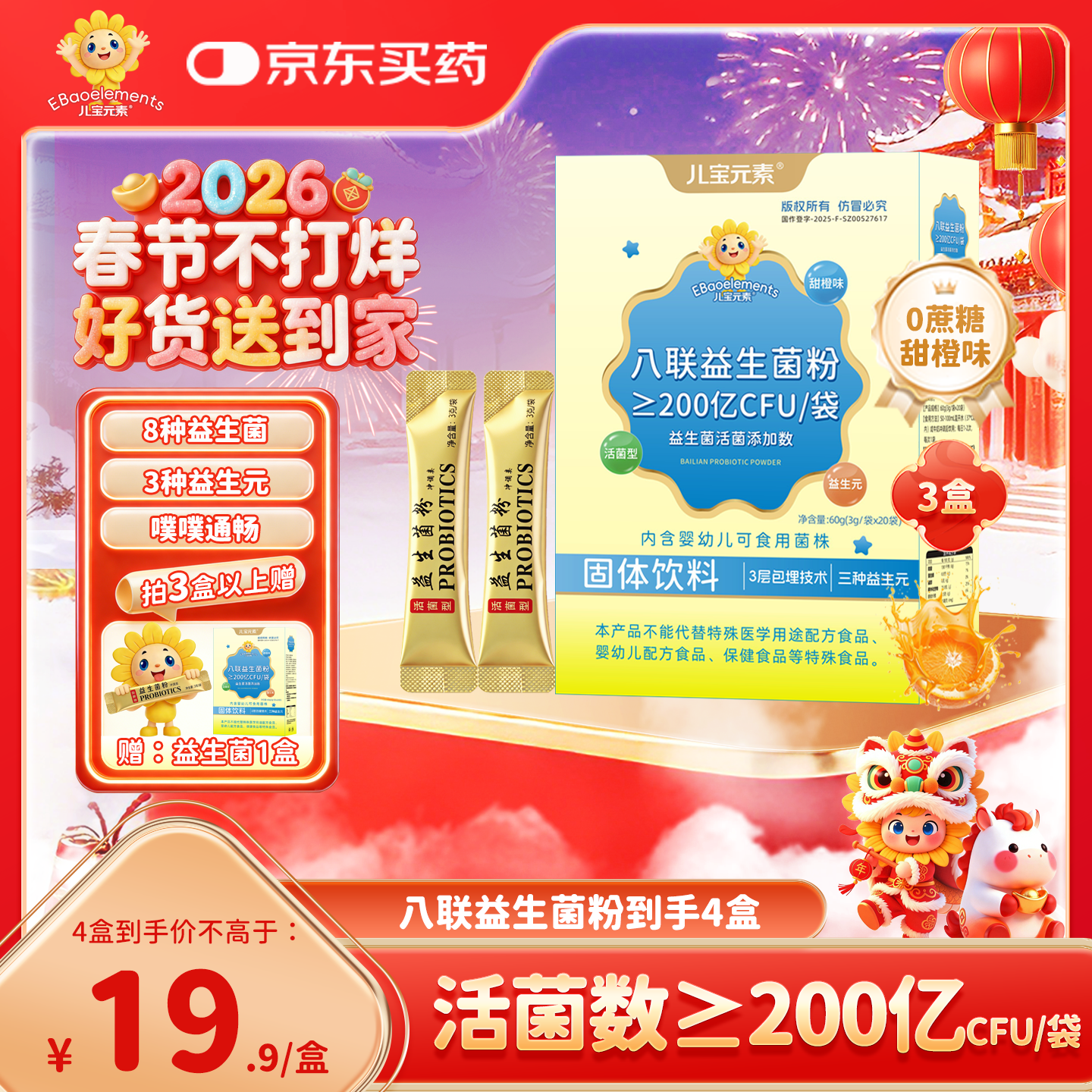 【京东商城】【食品保健】儿宝元素活性八联益生菌粉鼠李糖乳杆菌动物双歧杆菌Bb12三