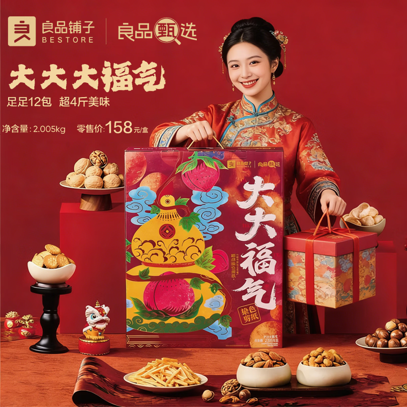【京东商城】【食品保健】米多奇红瑞款坚果礼盒不含饮料1.02kg 零食大礼包新年春节送