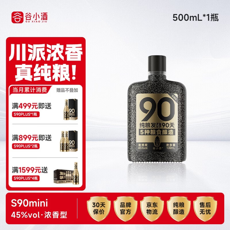 【京东商城】【食品保健】谷小酒 S90mini 浓香型 45度 100ml*1瓶 光瓶 纯粮发酵90天白酒口