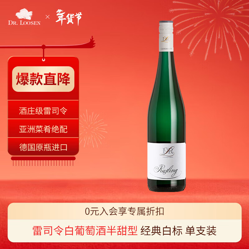 【京东商城】【食品保健】露森(Dr. Loosen)雷司令白葡萄酒半甜型经典白标 德国原瓶进