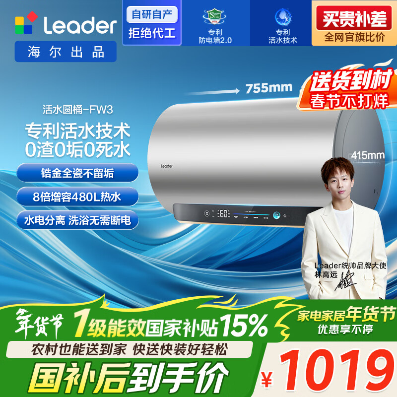 【京东商城】【生活家电】海尔出品统帅活力洗60升电热水器京东自营上门安装3300W速热