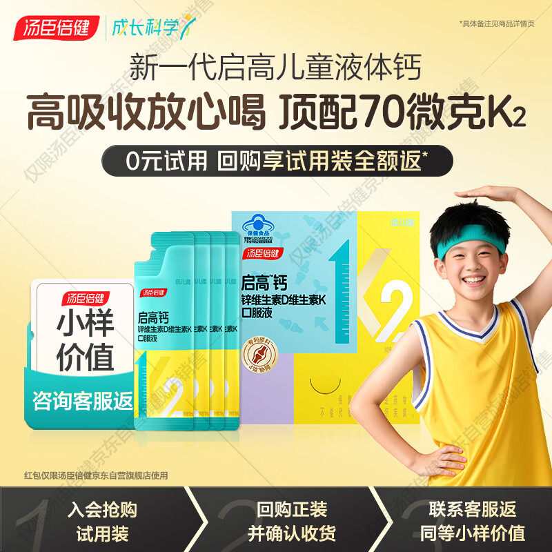 【京东商城】【食品保健】汤臣倍健启高儿童液体钙4条儿童青少年学生补钙【会员试用