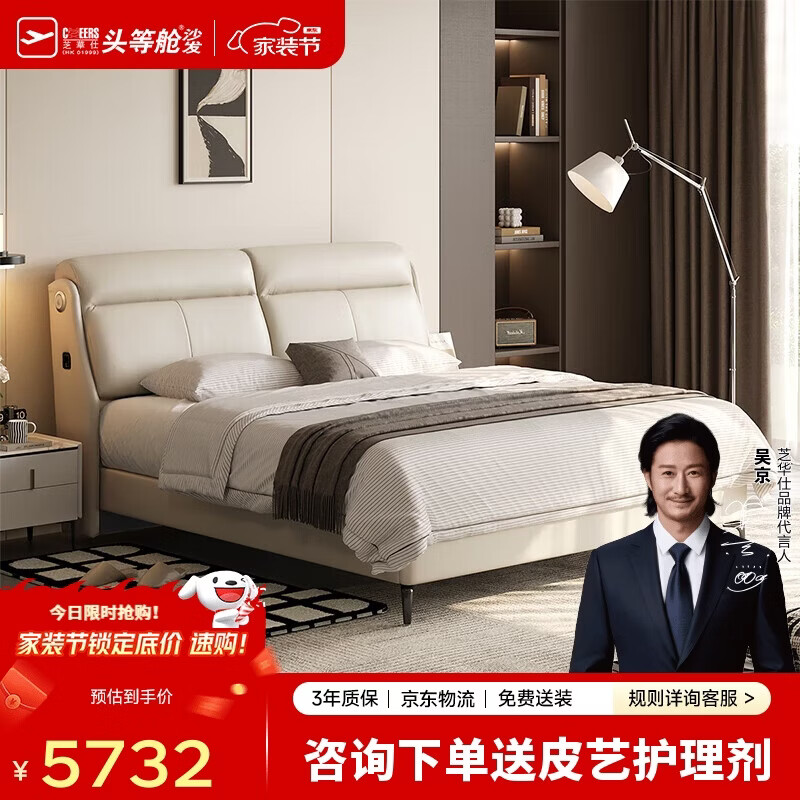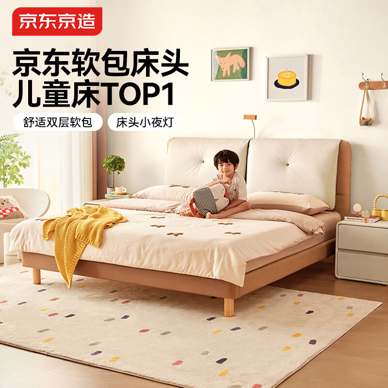 【京东商城】【家居家装】京东京造 大象耳朵硅胶皮床 实木排骨架儿童床1.2×2米