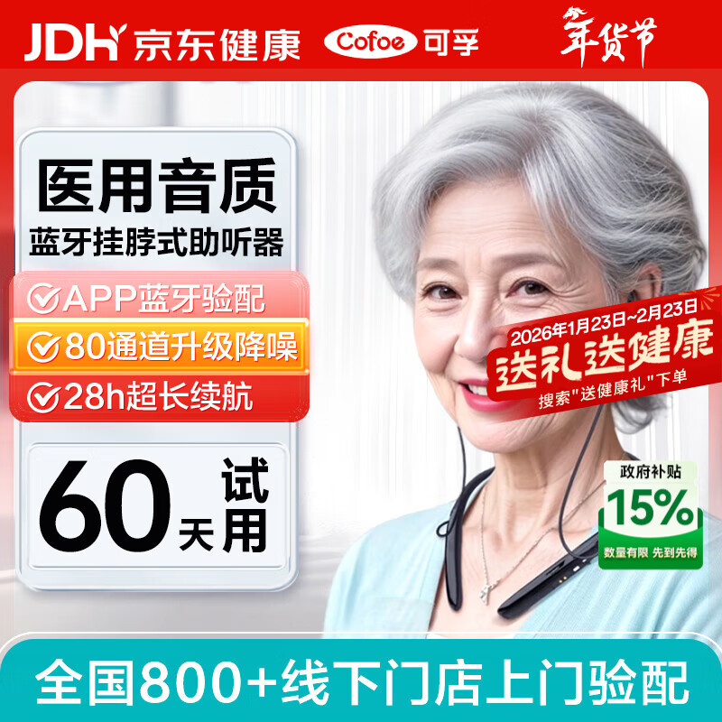 【京东商城】【食品保健】可孚新年礼物助听器老年人重度耳聋中重度耳背专用挂脖式