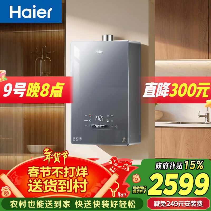【京东商城】【生活家电】海尔(Haier)麦浪套系电热水器 国家补贴双胆扁桶80升BK5PLUS B