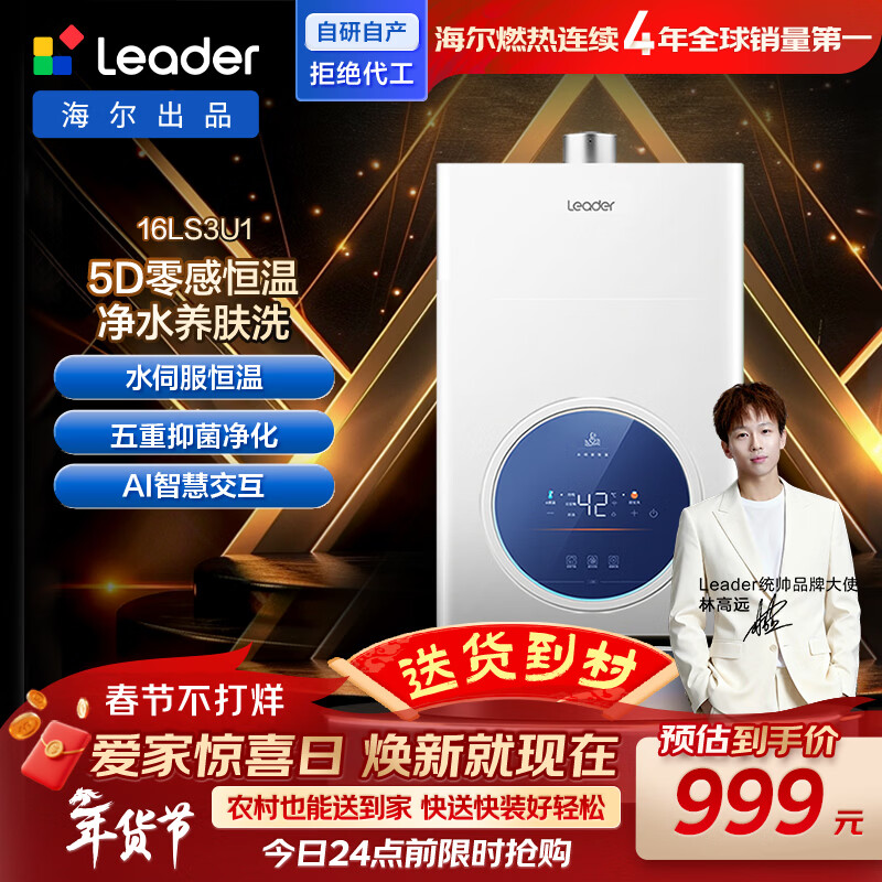 【京东商城】【生活家电】海尔出品统帅16升零冷水天然气燃气热水器京东自营上门安装