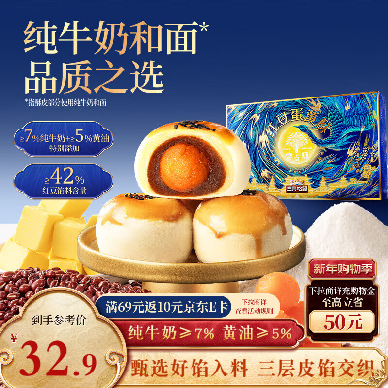 【京东商城】【食品保健】三只松鼠经典红豆蛋黄酥360g 宫点师雪媚娘点心营养早餐下