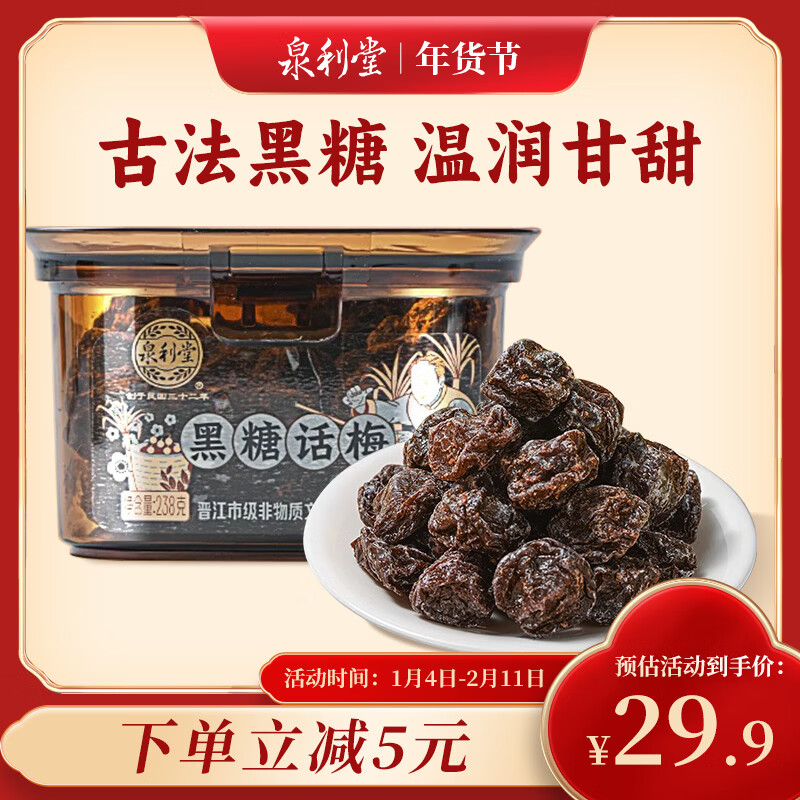 【京东商城】【食品保健】泉利堂 黑糖话梅238g 蜜饯果干果脯西梅干办公室休闲小零食
