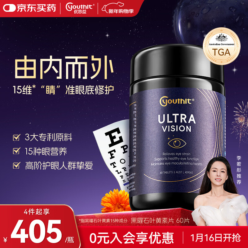 【京东商城】【食品保健】优思益youthit超视界高阶蓝莓叶黄素护眼片 黑曜石 越橘虾青