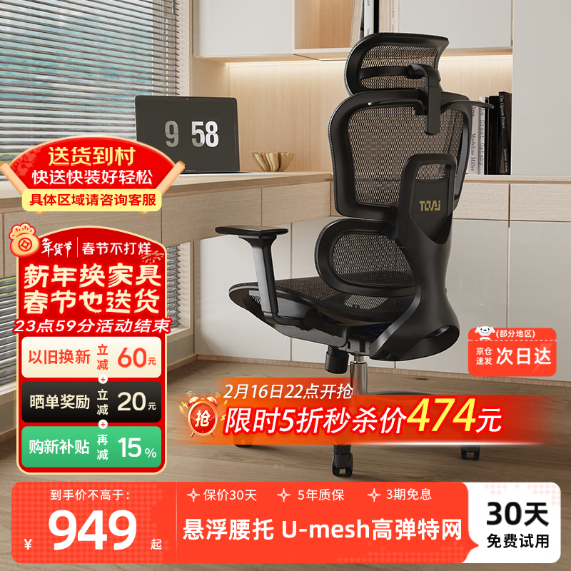 【京东商城】【家居家装】TOAIE1人体工学椅电竞椅办公椅电脑椅久坐舒服可躺椅背升降