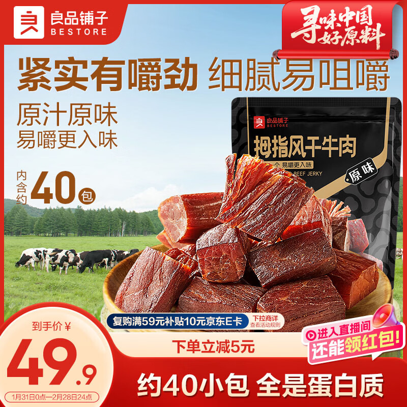 【京东商城】【食品保健】良品铺子无添加风干牛肉干200g孕妇儿童肉干肉脯5成干休闲单