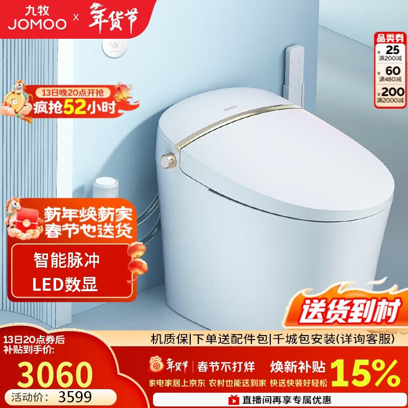 【京东商城】【家居家装】九牧(JOMOO)智能马桶一体机无水箱即热带烘干智能坐便器ZS3