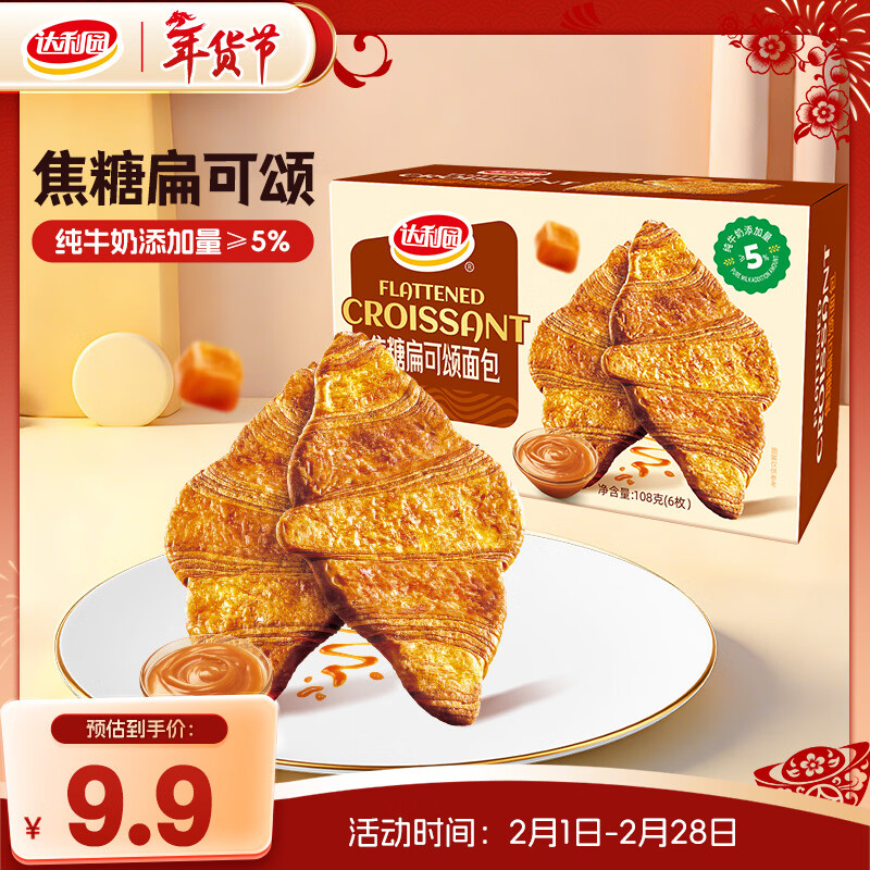 【京东商城】【食品保健】达利园焦糖扁可颂面包108g独立包装休闲零食充饥早餐开袋即