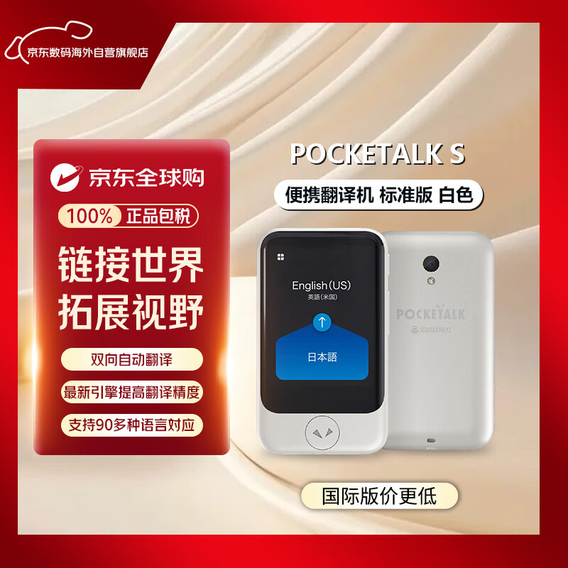 【京东商城】【手机数码】POCKETALK S 便携智能语音拍照实时翻译器 62种语言海外随行翻