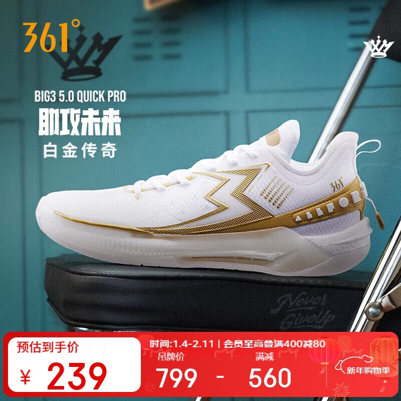 【京东商城】【读书运动】361°篮球鞋男鞋BIG3 5.0 QuickPRO碳板青少年运动鞋子男672421111-22