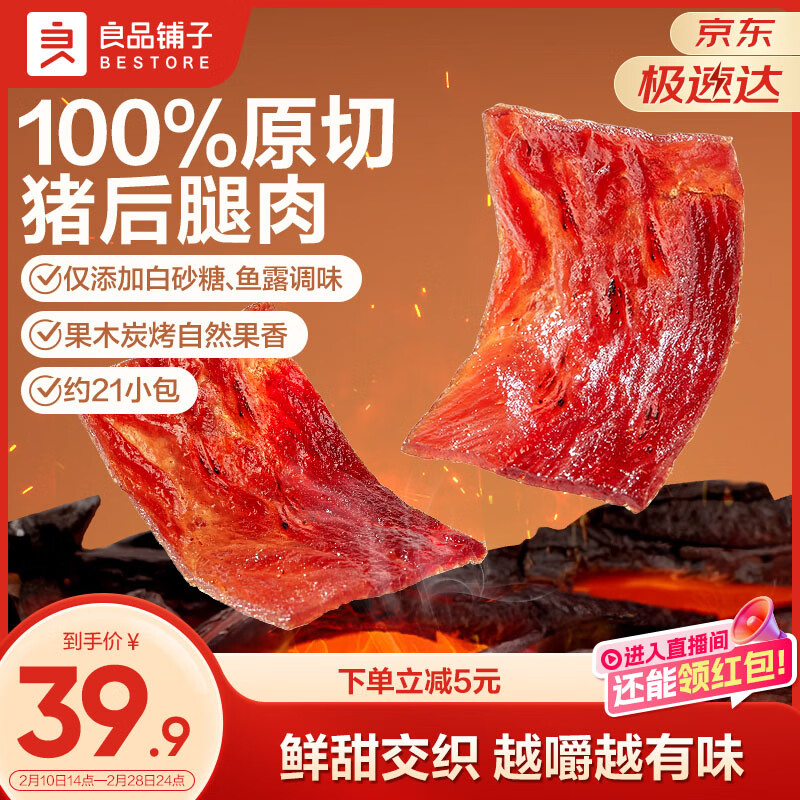 【京东商城】【食品保健】良品铺子 炭烤猪肉脯(烤肉) 300g 高蛋白肉脯肉干肉脯休闲零