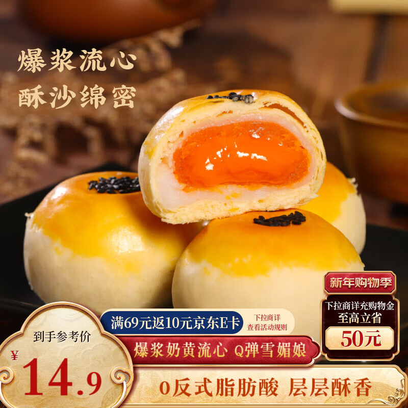 【京东商城】【食品保健】三只松鼠奶黄流心蛋黄酥400g 红豆雪媚娘点心零食早餐办公室