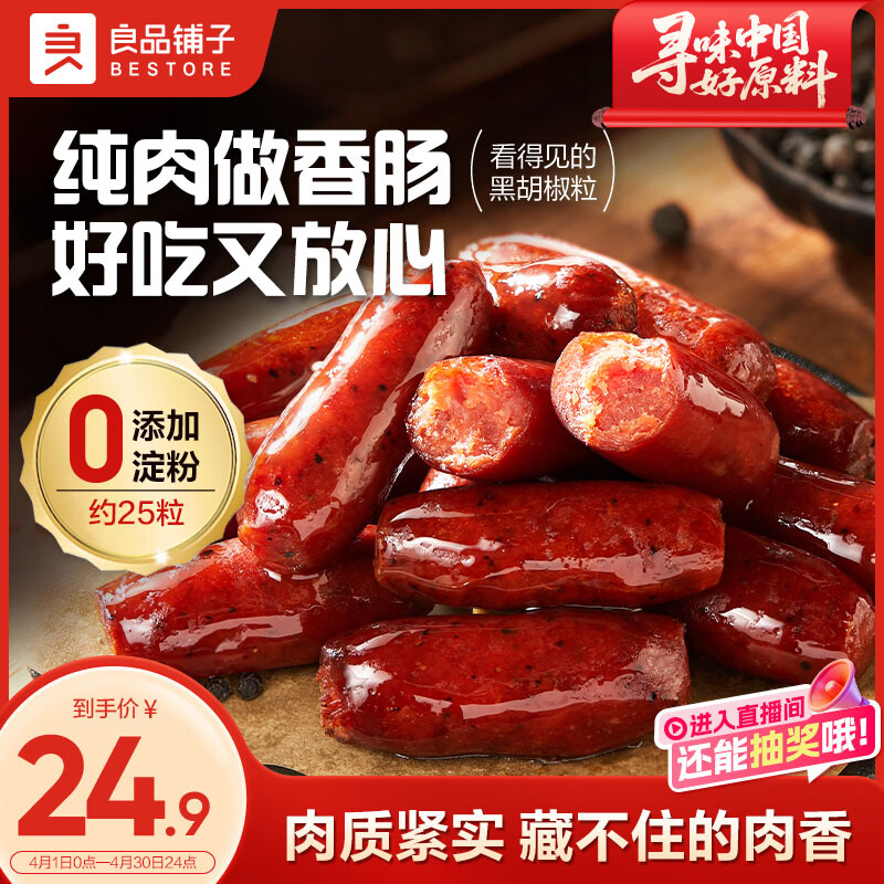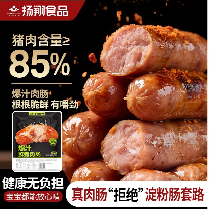 【京东商城】【食品保健】扬翔纯猪肉原味火山石烤肠440g/8根/袋 热狗早餐儿童肉肠烧烤