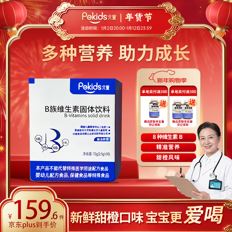 【京东商城】【食品保健】北童(PEKIDS)B族维生素固体饮料 复合维生素b族VB 8种维生素B