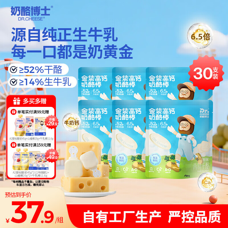 【京东商城】【母婴用品】金装高钙奶酪棒90g*6 宝宝儿童零食无添加牛奶棒 享婴儿食谱