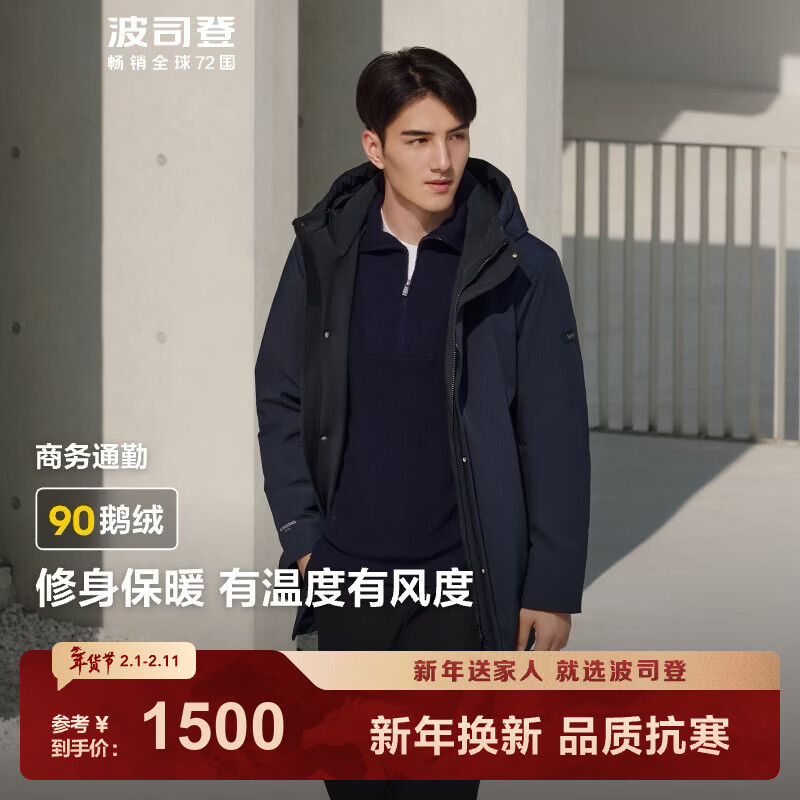 波司登(BOSIDENG)冬季羽绒服鹅绒男款中长款连帽新国标90绒商场同款外套 醉梦蓝5419 XL 185/104A