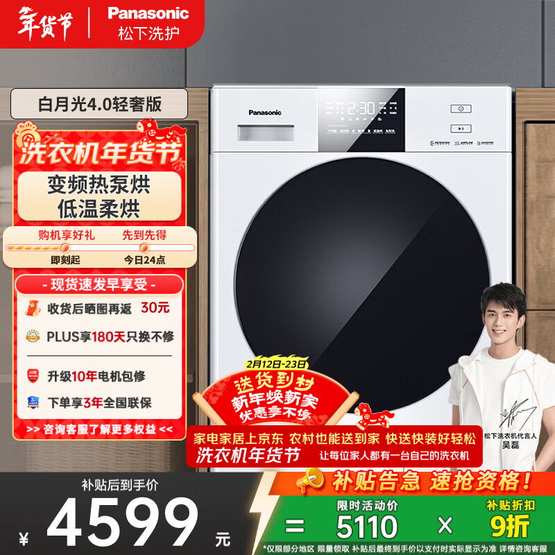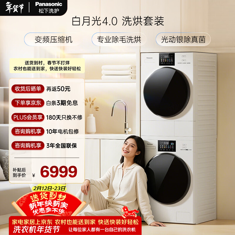 【京东商城】【生活家电】松下(Panasonic)白月光4.0洗烘套装10kg滚筒洗衣机+10kg热泵烘