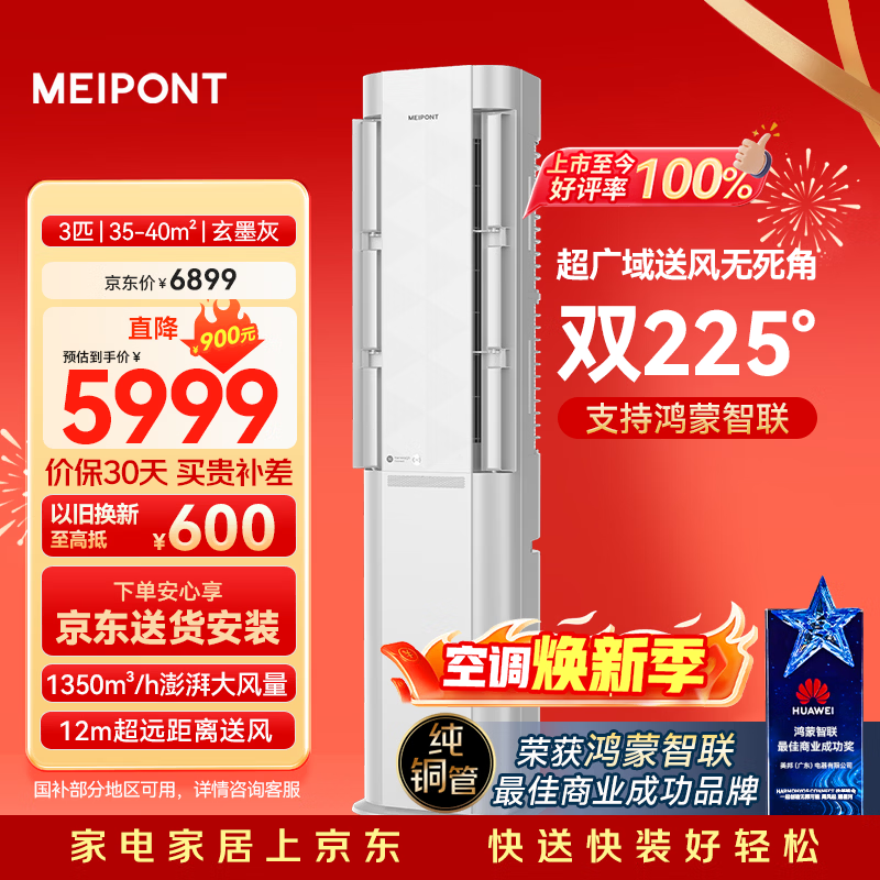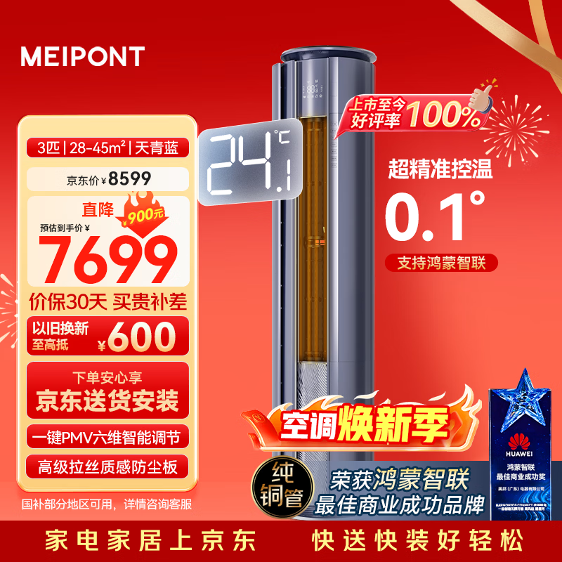 【京东商城】【生活家电】meipont3匹柜机飞凡 一级能效变频 纯铜管 高端旋转门冷暖空调