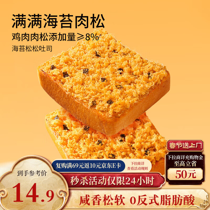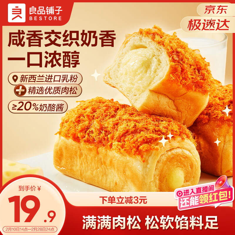 【京东商城】【食品保健】良品铺子肉松奶酪面包500g/箱营养早餐代餐面包糕点小贝点心