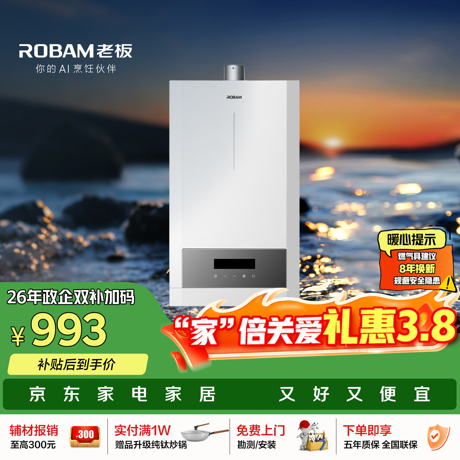 【京东商城】【生活家电】老板(Robam)【小云朵601】燃气热水器水气双调恒温智能变频