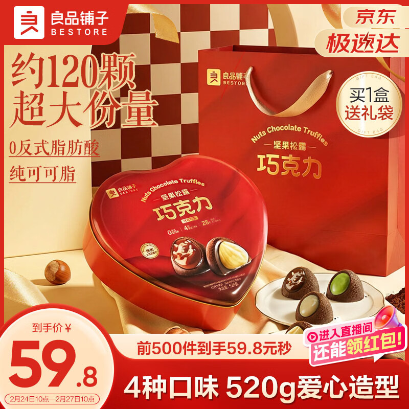 【京东商城】【食品保健】良品铺子坚果松露巧克力礼盒520g送礼送人送女友38女神节礼