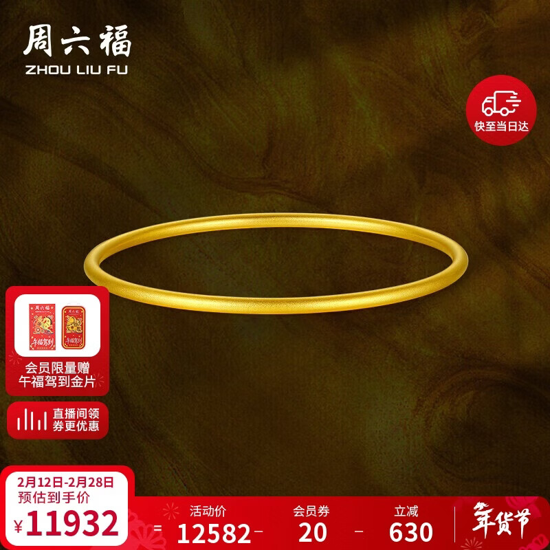 【京东商城】【礼品箱包】周六福简尚古法黄金手镯女足金999生日礼物计价AA106728 约8.68g