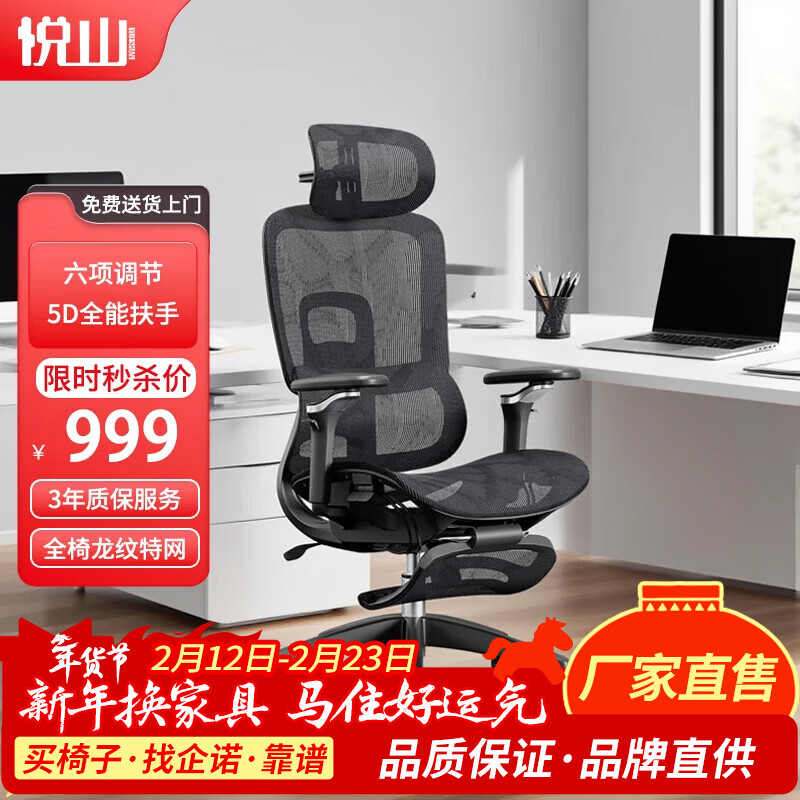 【京东商城】【家居家装】悦山 NT100B办公椅子人体工学椅人工力学座椅515*690*123-1280mm