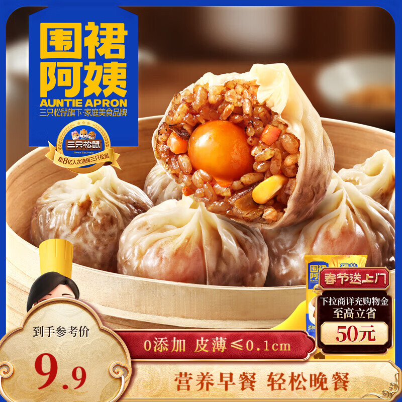 【京东商城】【食品保健】三只松鼠围裙阿姨纸皮烧麦蛋黄味60g*4 速食方便早餐半成品