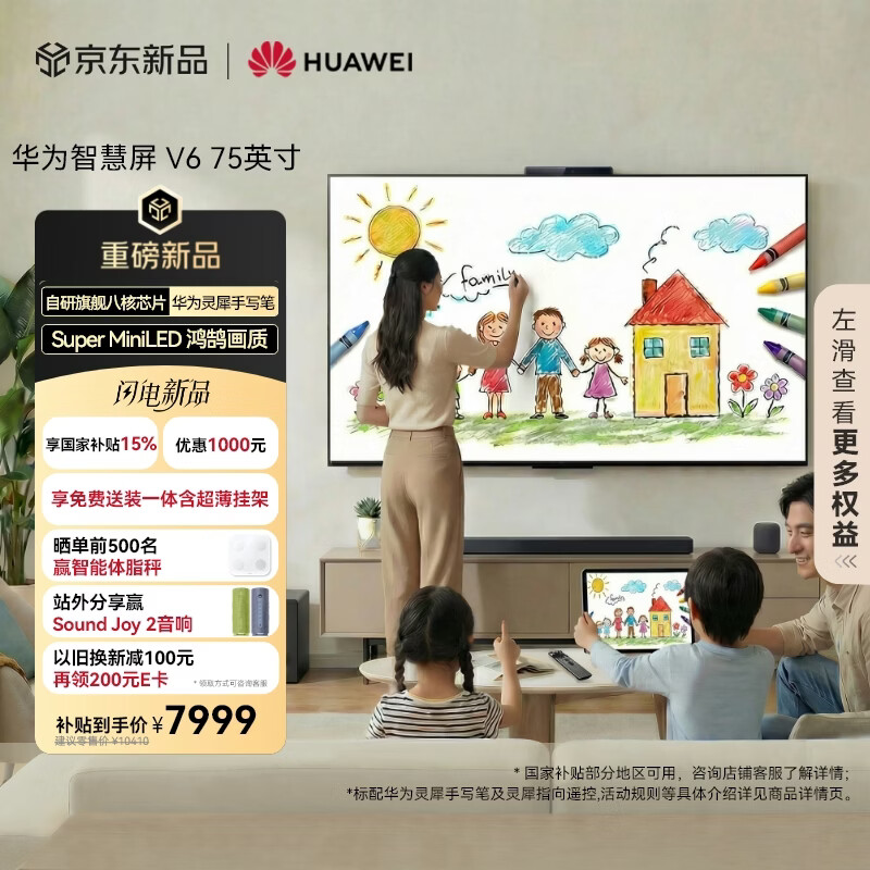 【京东商城】【生活家电】华为智慧屏 V6 75英寸 可触控可手写【超薄挂架送装一体 】Sup
