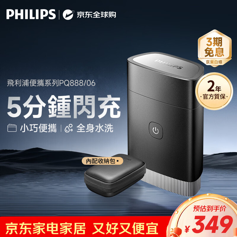 【京东商城】【美容美妆】飞利浦(PHILIPS)電動剃鬚刀黑鋒刃便攜旅行出差剃鬚刀 出行