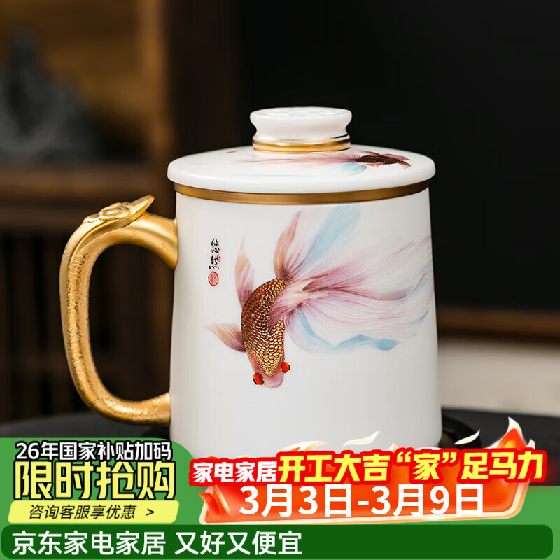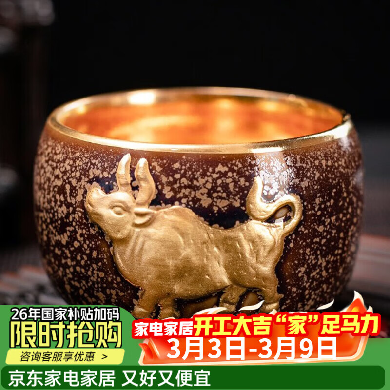 【京东商城】【家居家装】京峰阁 汝窑金丝开片月白豆黄一路莲升豆黄盖碗三才盖碗可