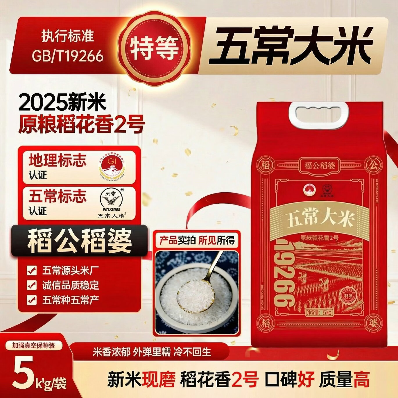 【京东商城】【食品保健】常馨稻公稻婆 稻花香2号【特等】五常大米5kg/10斤 2025新米
