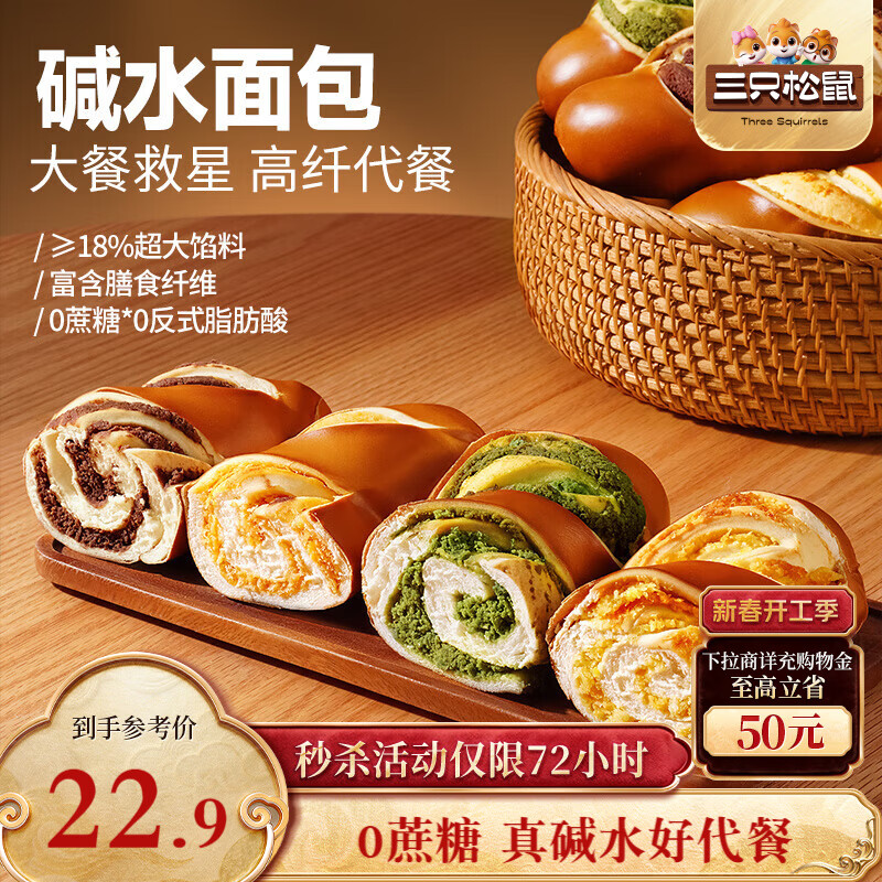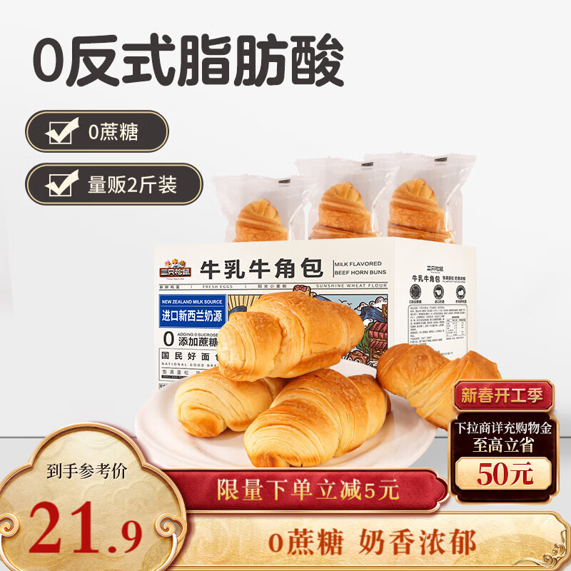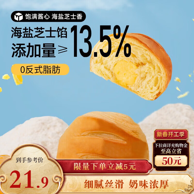【京东商城】【食品保健】三只松鼠芝士软心手撕包1000g 手撕网红早餐代餐营养夹心代