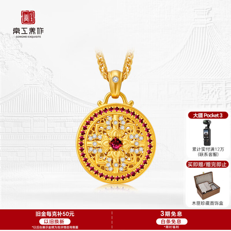 【京东商城】【礼品箱包】京工美作古法黄金吊坠金刚杵项链镶钻足金999生日礼物送老
