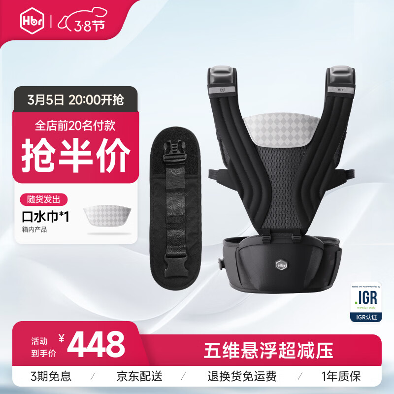 【京东商城】【母婴用品】虎贝尔(HBR)Air悬浮腰凳婴儿背带宝宝轻便抱娃神器减压 玄