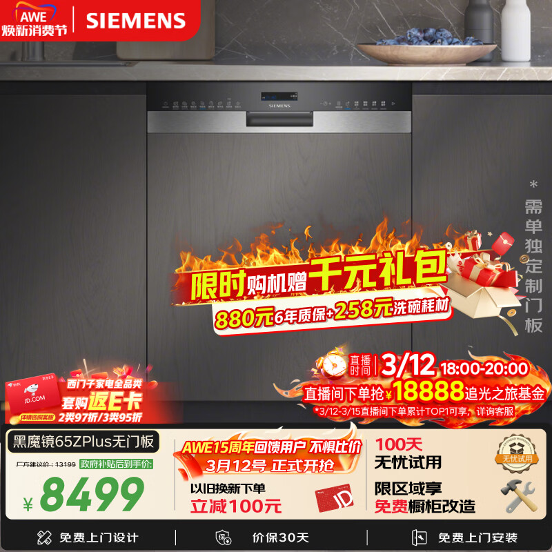 【京东商城】【生活家电】西门子(SIEMENS)黑魔镜65ZPLUS 150升以上容积晶蕾烘干嵌入式