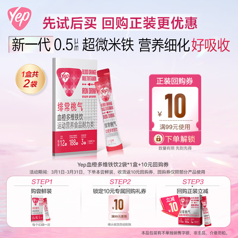 【京东商城】【食品保健】汤臣倍健Yep绯常桃气血橙多维铁饮运动营养食品耐力类2袋(