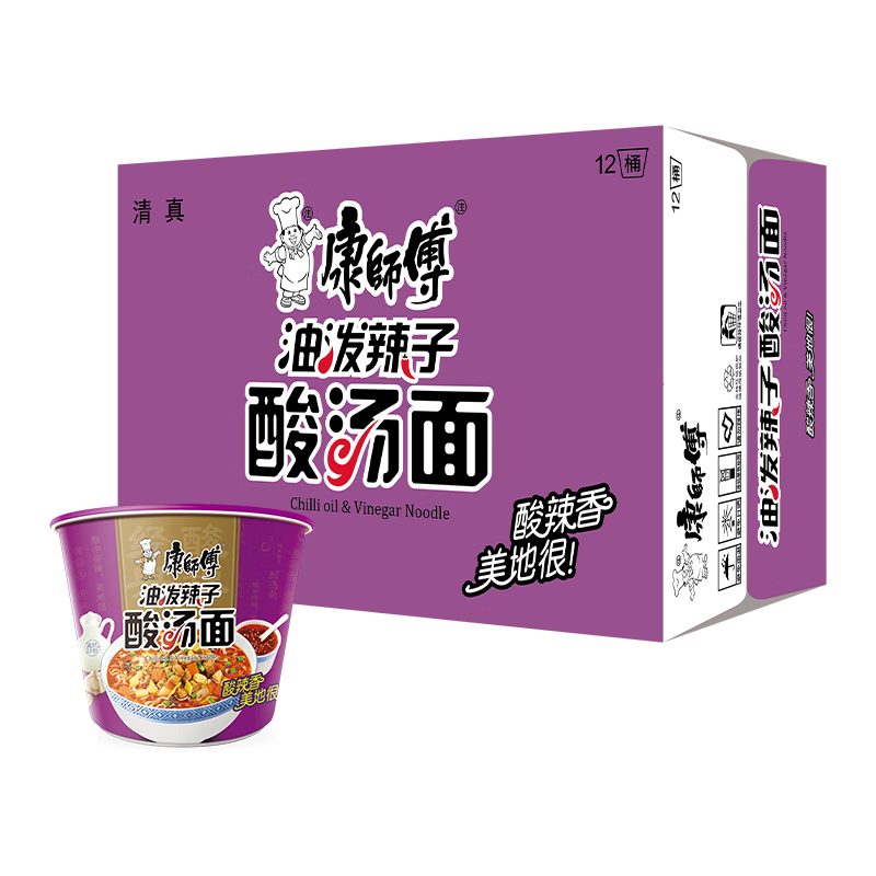 【京东商城】【食品保健】康师傅方便面 经典油泼辣子酸汤桶面125g*12 泡面整箱速食 方
