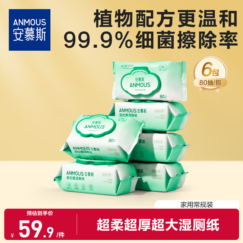 【京东商城】【母婴用品】安慕斯湿厕纸私处湿巾擦屁屁专用厕所湿巾80抽*6包湿厕巾家