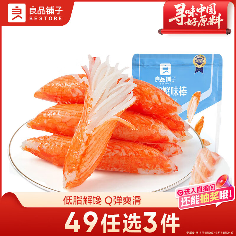 【京东商城】【食品保健】良品铺子 低脂蟹味棒105g海鲜熟食鱼类制品小吃即食海味休闲